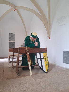 Kassenwart, Darstellung: Gefolge des RItters, agiert als Verwalter, Fußsoldat, Koch und Mann für alle Fälle
